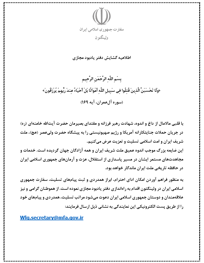 اطلاعیه گشایش دفتر یادبود مجازی
